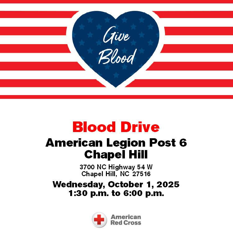 Location: American Legion Post 6, 3700 NC 54W Chapel Hill, NC 27516